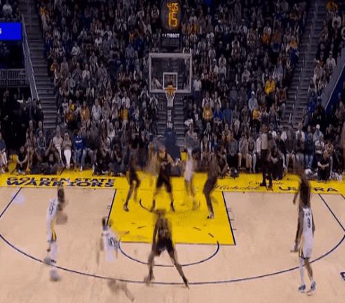 库里左翼启动,快速转移,追梦喂底角梅尔顿三分。